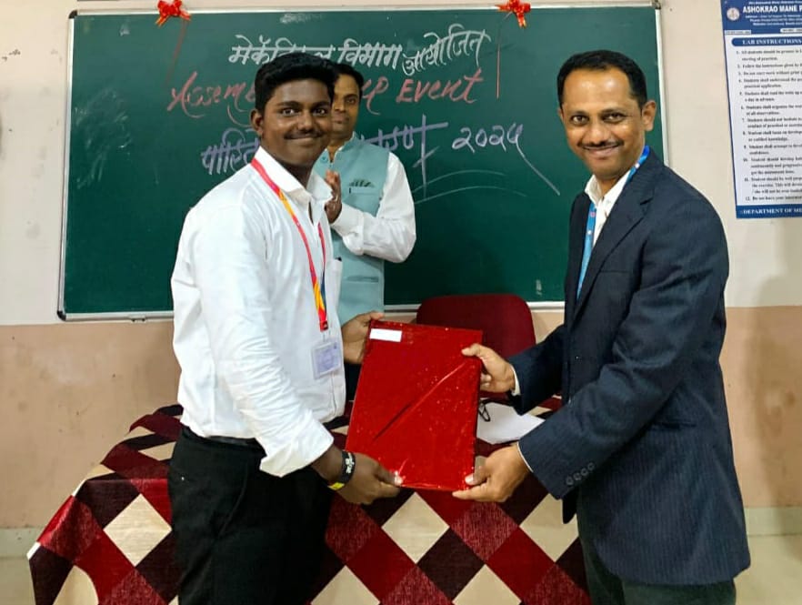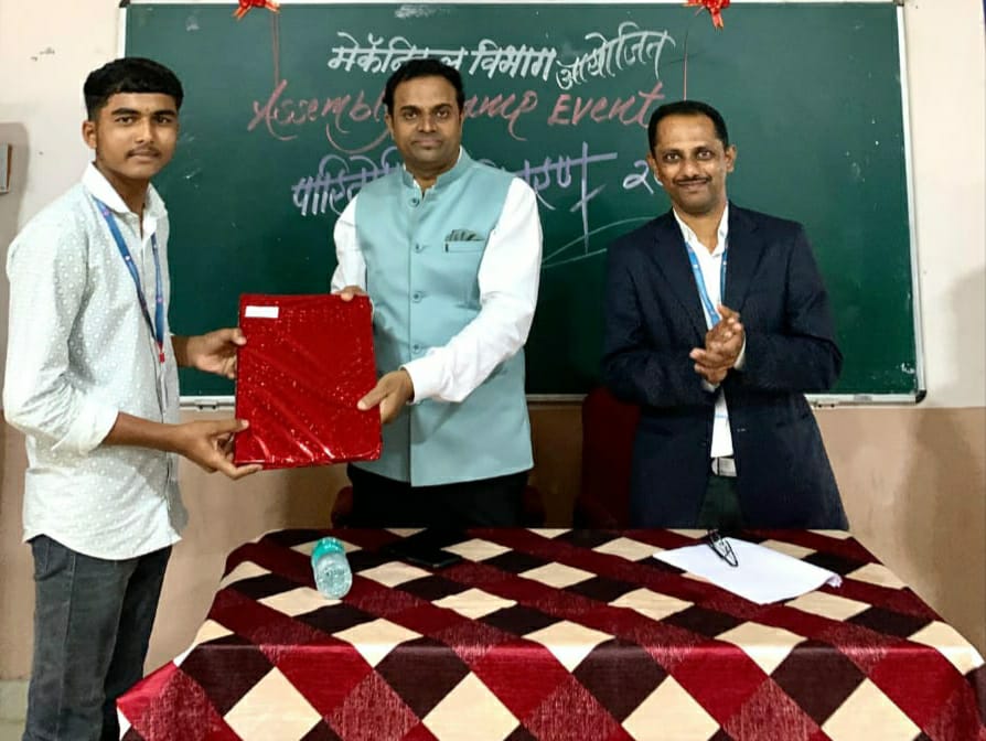 FY Mechanical Engineering Student Kunal Patil Secured 1st Rank in Assembly Champ Competition FY Electronics & Computer Engineering Student Aryan Mane Secured 2nd Rank in Assembly Champ Competition FY Mechanical Engineering Student Sagar Kamanna Secured 3rd Rank in Assembly Champ Competition