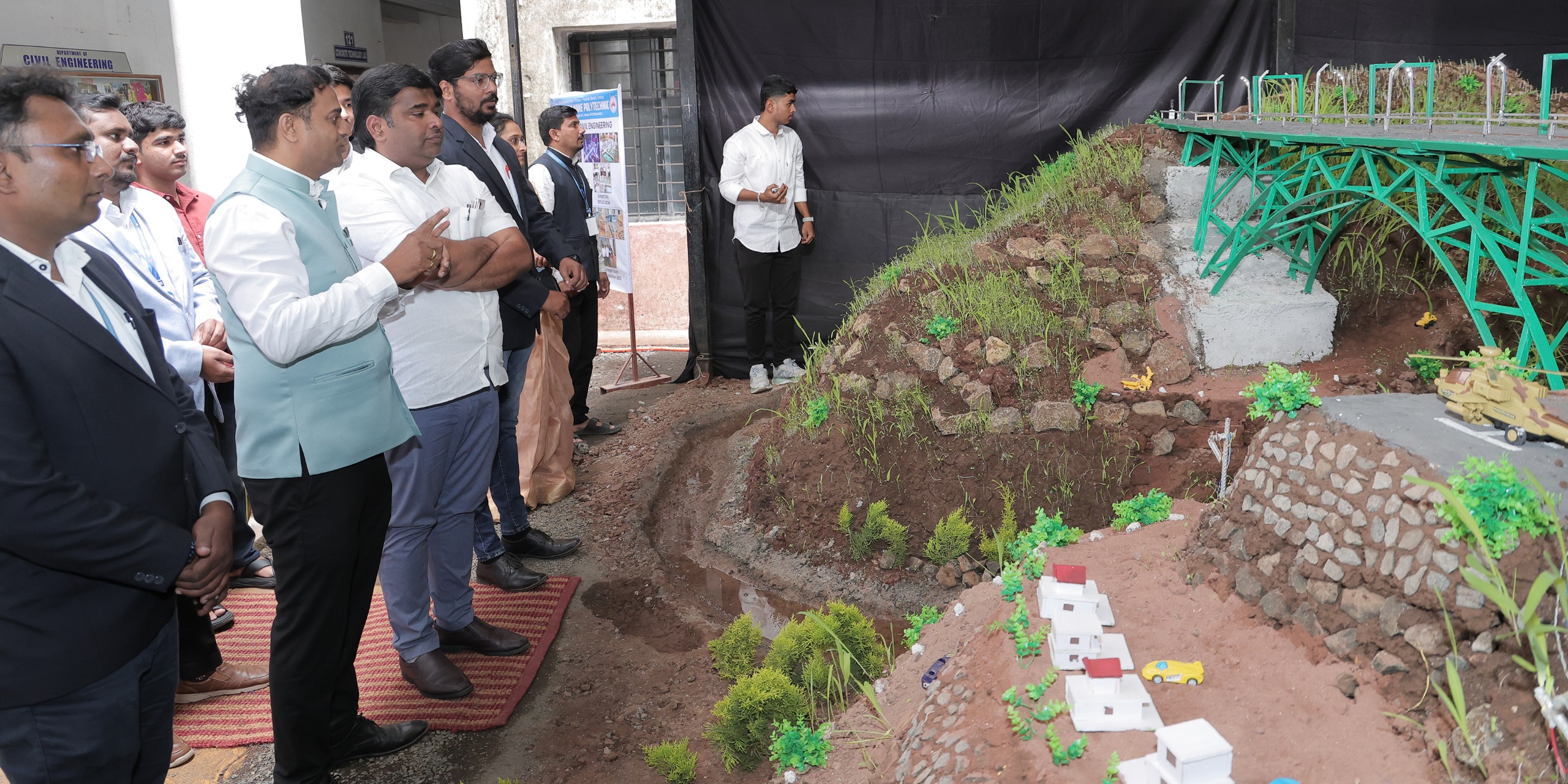 On the occasion of Engineers’ Day on 15/09/2025, the Civil Engineering Department organized a special program to pay tribute to Sir M. Visvesvaraya, the legendary Civil Engineer and Bharat Ratna awardee. As part of the celebration, our students showcased their talent and creativity by preparing a working model of the Chenab Railway Bridge, the world’s highest railway bridge, located in Jammu & Kashmir. The model highlighted the structural features, design techniques, and construction challenges of this engineering marvel. The bridge, which stands taller than the Eiffel Tower, represents the excellence of Indian engineering in modern infrastructure development. The event was inaugurated by the Hon. Shri. Vijayshingh Mane, President of the Sanshta, who appreciated the efforts of the students and faculty for bringing such innovative and practical learning experiences. He also encouraged students to follow the ideals of Sir M. Visvesvaraya and contribute towards nation-building through engineering excellence. The celebration not only paid tribute to great engineers but also inspired students to develop creativity, problem-solving skills, and technical knowledge for the future. The celebration concluded with the message that engineers play a crucial role in nation-building, and young civil engineers must continue to contribute to society through sustainable and innovative practices.